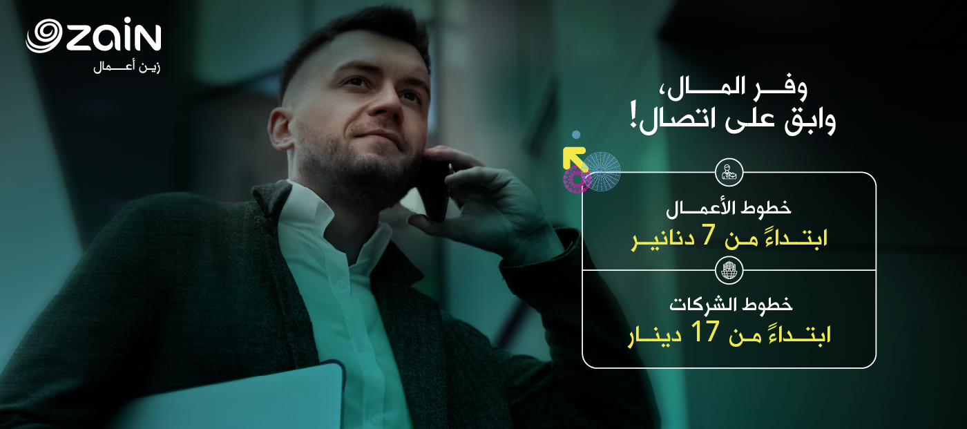 تتناسب حُزم الأعمال مع متطلبات الموظفين ومسؤولي الإدارات الوسطى وتتضمن مكالمات غير محدودة على شبكة زين الأردن، ودقائق مجانية على الشبكات المحلية الأُخرى وحزم الإنترنت عبر الهاتف المتنقّل، والرسائل النصية القصيرة المحلية، وخدمات مجانية عديدة، باشتراك شهري يبدأ من ٧ دنانير فقط.