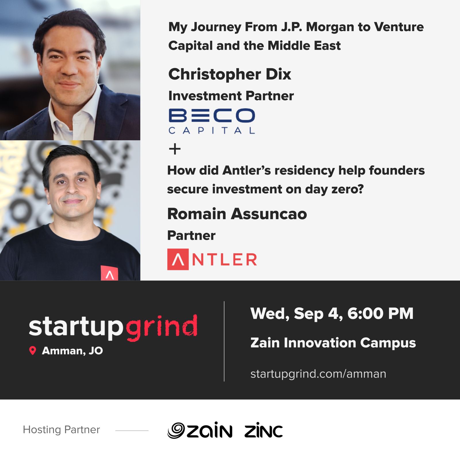 02 أيلول, 2024 ضمن استضافتها لفعاليات “Startup Grind” العالمية؛ وجّهت منصّة زين للإبداع (ZINC) دعوتها للشباب ورياديي الأعمال والمهتمين بمجال ريادة الأعمال في الأردن لحضور جلستين حواريتين مميزتين، تستضيف خلالهما “Christopher Dix” الشريك المستثمر في صندوق “BECO Capital”